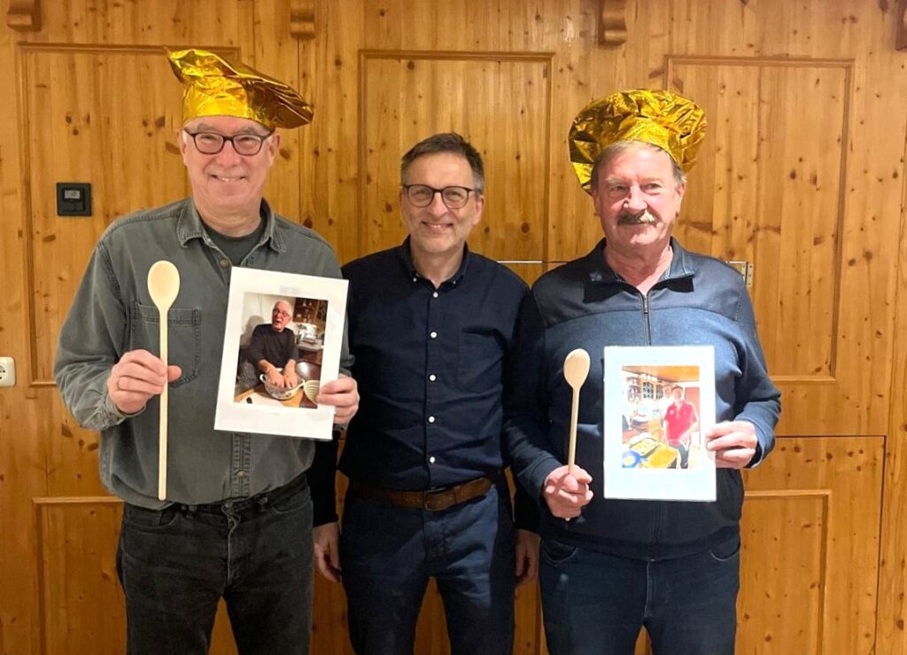 Darüber hinaus überreichte er Alois Baumgartner eine goldene Chefkochmütze samt Urkunde. Dieser sorgt nämlich beim jährlichen Skiausflug in die Region Dachstein West seit 30 Jahren für einen „magischen Schweinsbraten“. Mit einem Lächeln setzte sich Maier dafür ein, die dazugehörige Sauce zum Weltkulturerbe zu ernennen. Ergänzend dazu erhielt auch Herwig Slezak für „in 20 Jahren rund 1000 mit Liebe geformte Knödel“ eine Chefkochmütze verliehen. Applaus galt des Weiteren dem langjährigen Versteigerer des Christbaums und noch viel mehr am 5. Januar, Joschi Haugeneder. Zu guter Letzt schwelgten alle beim Blättern in den zwei Goldenen AH-Büchern in Erinnerungen. – H.S.